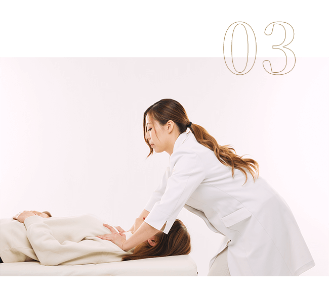 妊娠体質をつくるために、特許資格である子宮調整士が内側、外側の両方から身体を整えていきます。