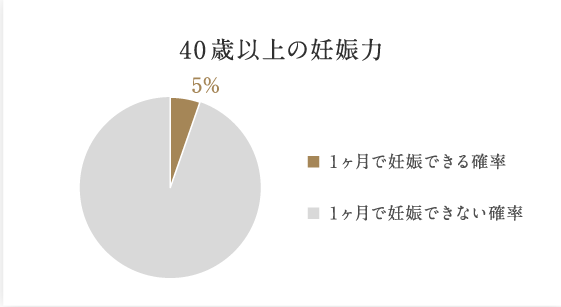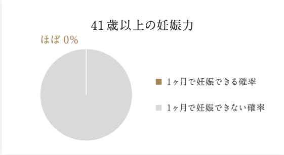 40歳になると5%41歳以降は自然妊娠はほとんどないとまで言われています。
